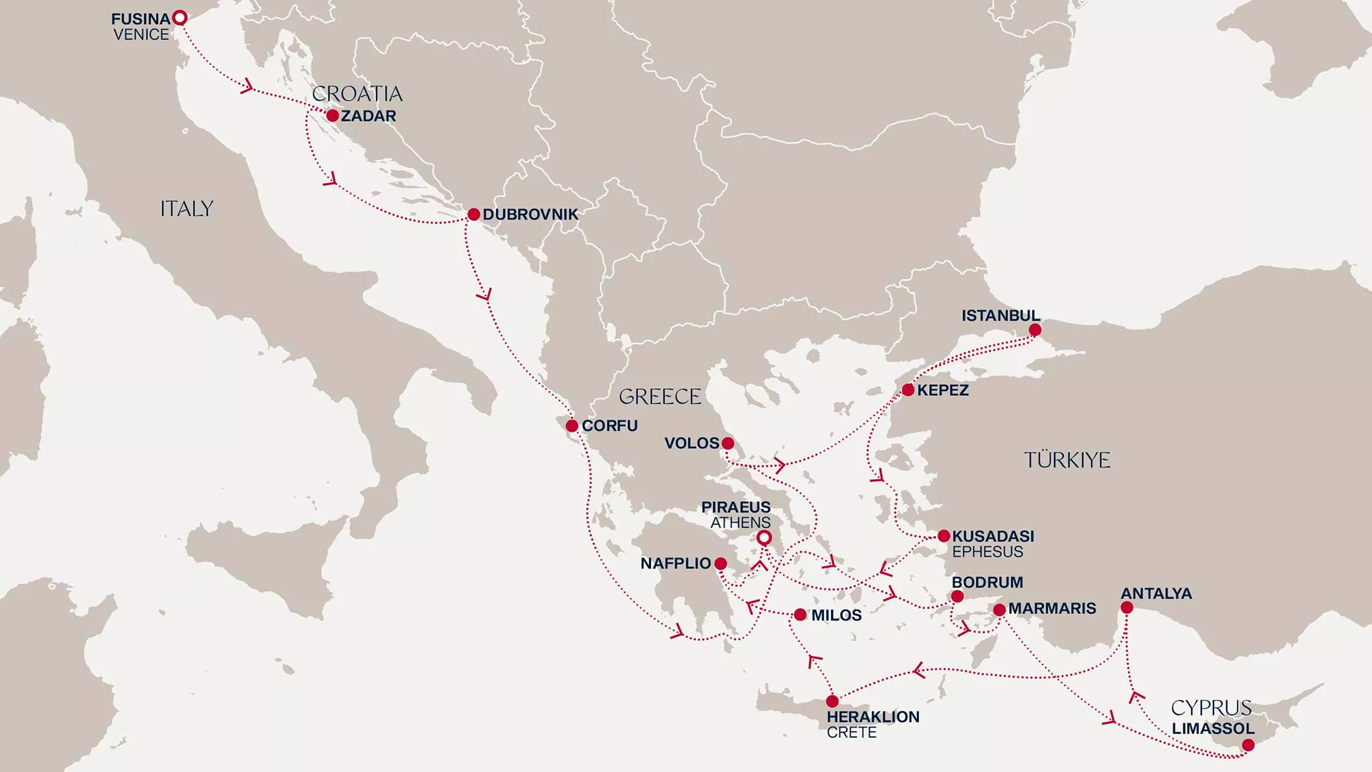then embrace a warm welcome in Athens. Continue through Bodrum and Marmaris,