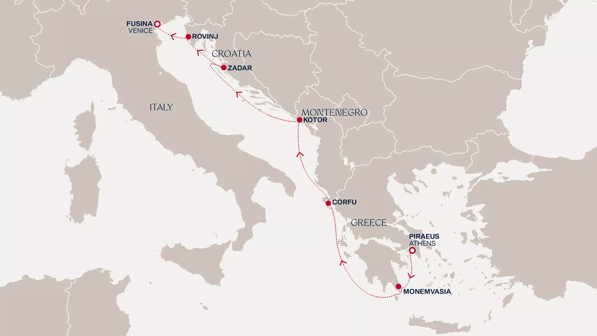 We follow adventurous Athenians to postcard Monemvasia, the Gibraltar of the Peloponnese. We power-lounge in Corfu where beaches and bars are set into jutting cliffs, then squeeze through the Bay of Kotor to tackle the 1, 350 steps up the steep walls of St John’s fortress then. We embrace Croatia’s curvy coast—caerulean Kotor, the assortment of colonnades, columns and sarcophagi in Zadar, and redolent Rovinj—before following the Grand Canal to Harry’s Bar for a Bellini’s and star gazing Saint Mark’s Basilica.