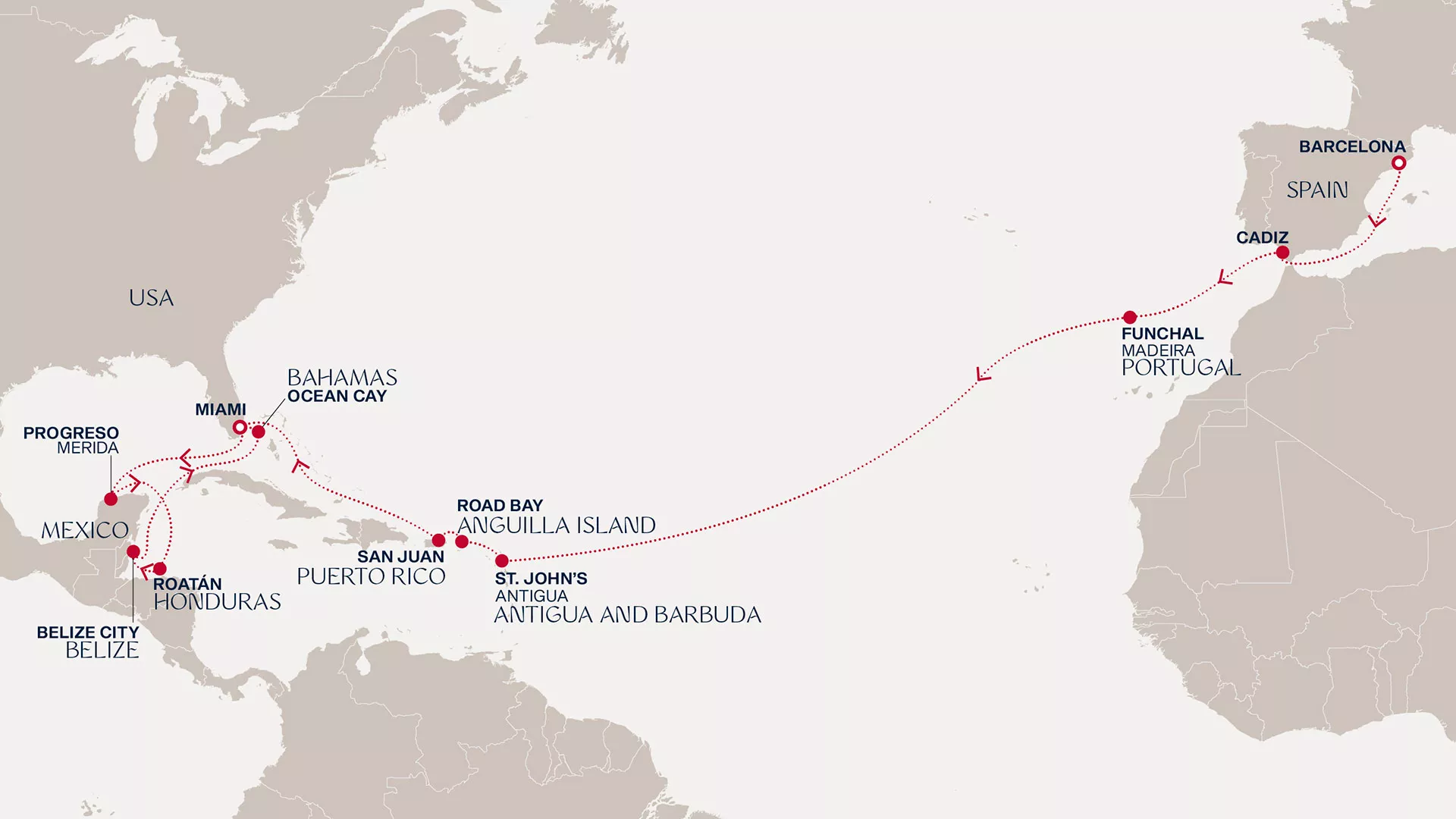 peaks of Funchal. Filled with ocean wellness, we cross the Atlantic to the Caribbean’s