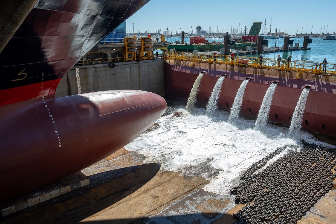 The float out is a traditional maritime event that represents a significant moment in the construction of a new ship as it is the first time that the ship will touch water and will then enter the final phases of construction to complete interiors, fixtures and fittings.