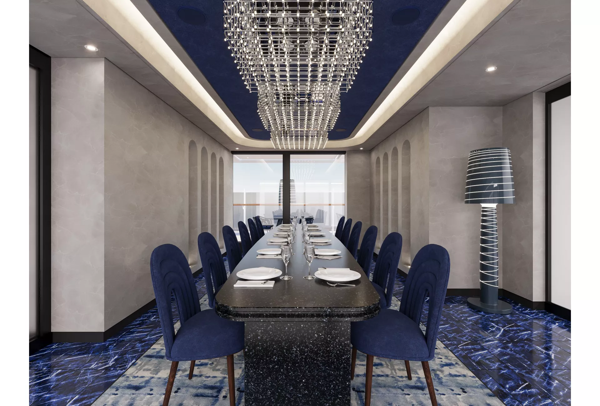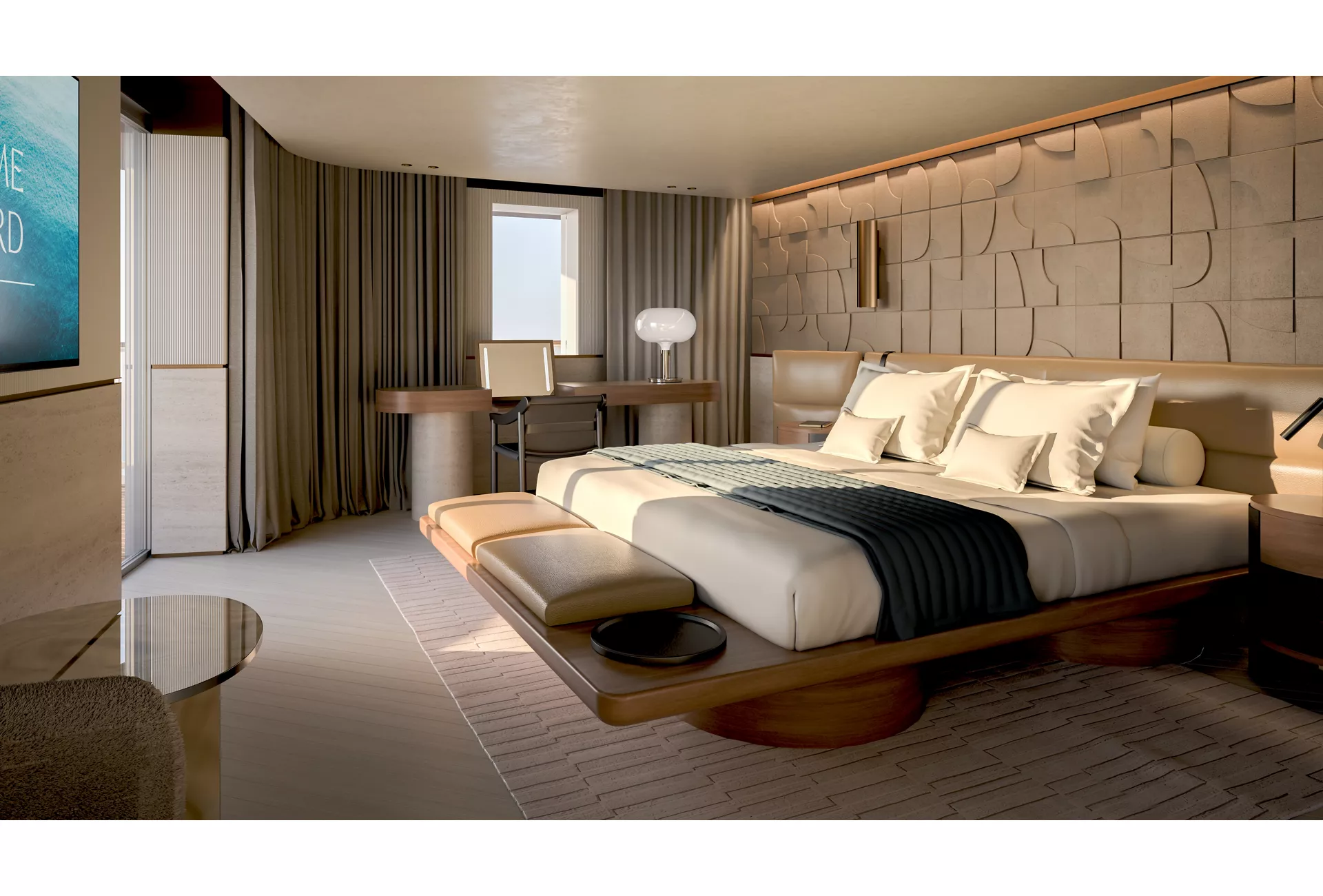 The most exclusive residence on board, the Owner’s Residence, designed by Patricia Urquiola, represents the ultimate expression of modern ocean living: an immersive emotional and sensory journey.