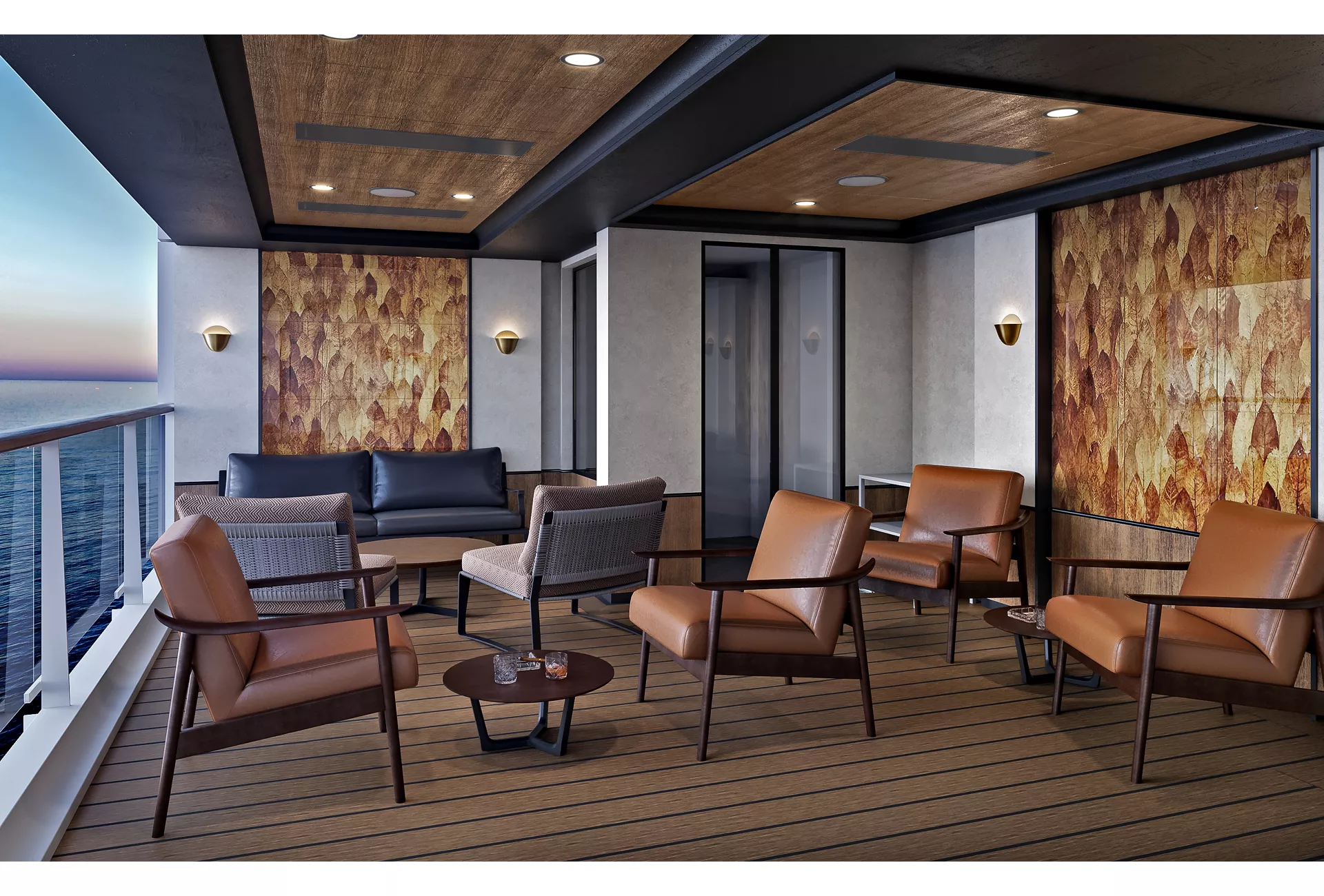 Stand in awe of the panoramic ocean views from your expansive private terrace – extending over the full ship's aft width – with a spacious infinity whirlpool and elegant outdoor dining and lounging areas exquisitely designed by Manutti.